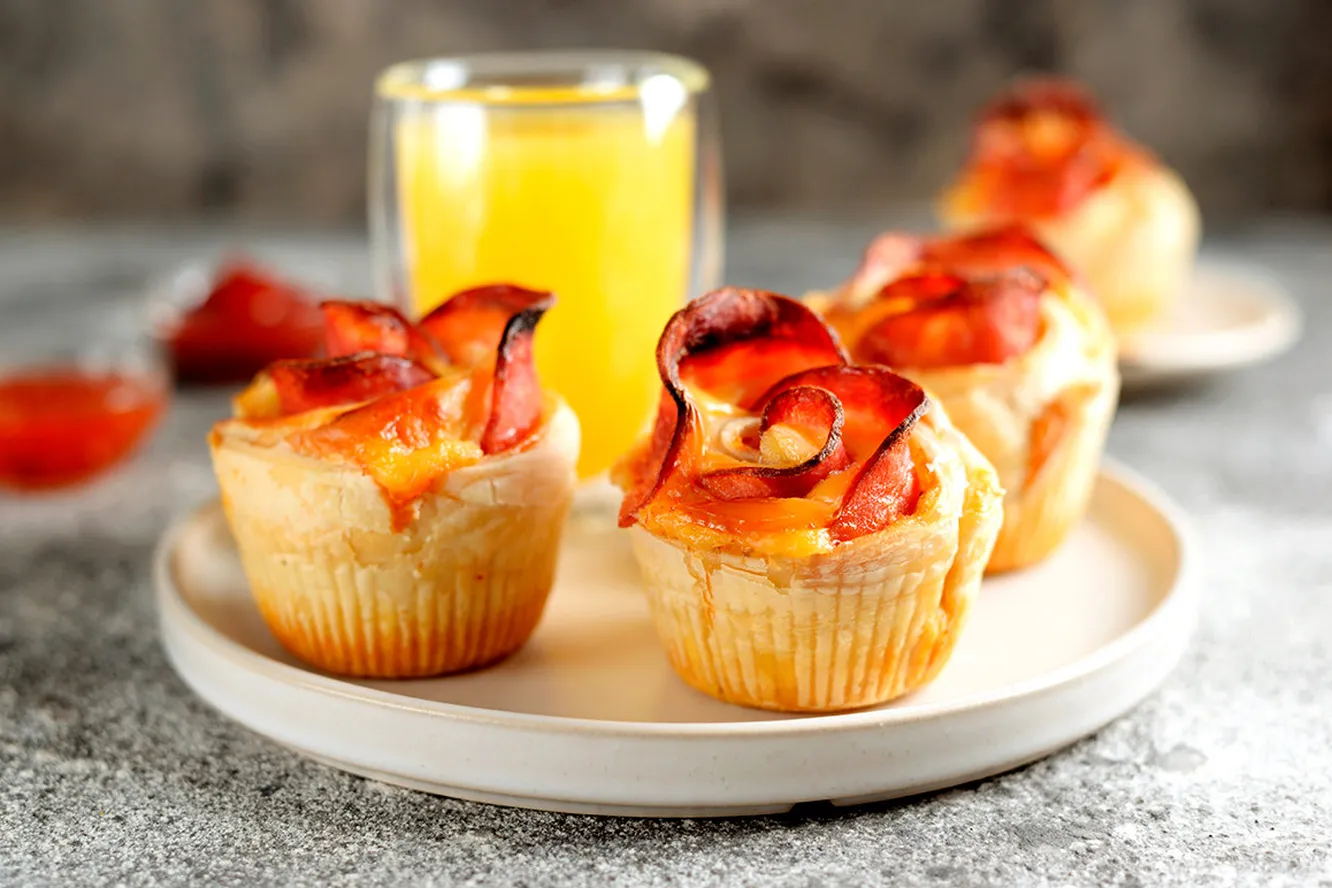 Эти слоеные розочки с ветчиной и сыром – отличное решение для домашней вечеринки вместо горячих бутербродов с сыром. За каких-то полчаса можно напечь 20-30 штук, так что сможете накормить всех своих гостей.